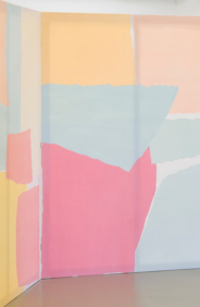 Rapport à la toile et à l’espace, à la fois de la toile elle-même et du lieu qui l’accueille : l’œuvre est un monde en soi qui diffuse une nouvelle réalité dès qu’elle est exposée. Comment relier la composition interne de l’œuvre à l’architecture environnante ? L’artiste joue avec le champ, l’hors-champ, les bordures et les marges des formats choisis. Mais l’espace d’exposition ouvre à son tour un horizon : il laisse au spectateur la liberté de composer sa propre partition mentale, oscillant entre le vide, le narratif, le temps suspendu ou le rythme qu’il ressent.