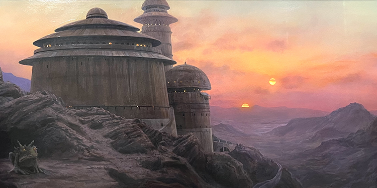 La deuxième partie de l’exposition convie le public dans le monde de l’étrange. On y découvre notamment la créature de Predator (1987) à taille humaine, un costume présent dans Minority Report (2002). Une autre partie est consacrée à la présentation de décors peints en trompe l’oeil, autrement dit des ‘matte painting’ originaux utilisés sur quatre films : Le Retour du Jedi (1983) avec le temple de Jabba (peinture de Michael Pangrazio), Demolition Man (1993) avec un paysage urbain peint par Rocco Gioffre, Robocop 2 (1990) avec un Matte Painting de Mark Sullivan et La famille Addams (1991), une citerne souterraine constituée de voûtes et colonnes (réalisé par Syd Dutton), qui se raccorde dans le film à Oncle Fétide naviguant sur une gondole. Son costume original porté dans Les valeurs de la famille Addams (1993) y est également exposé.