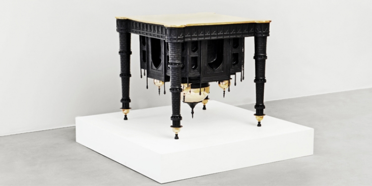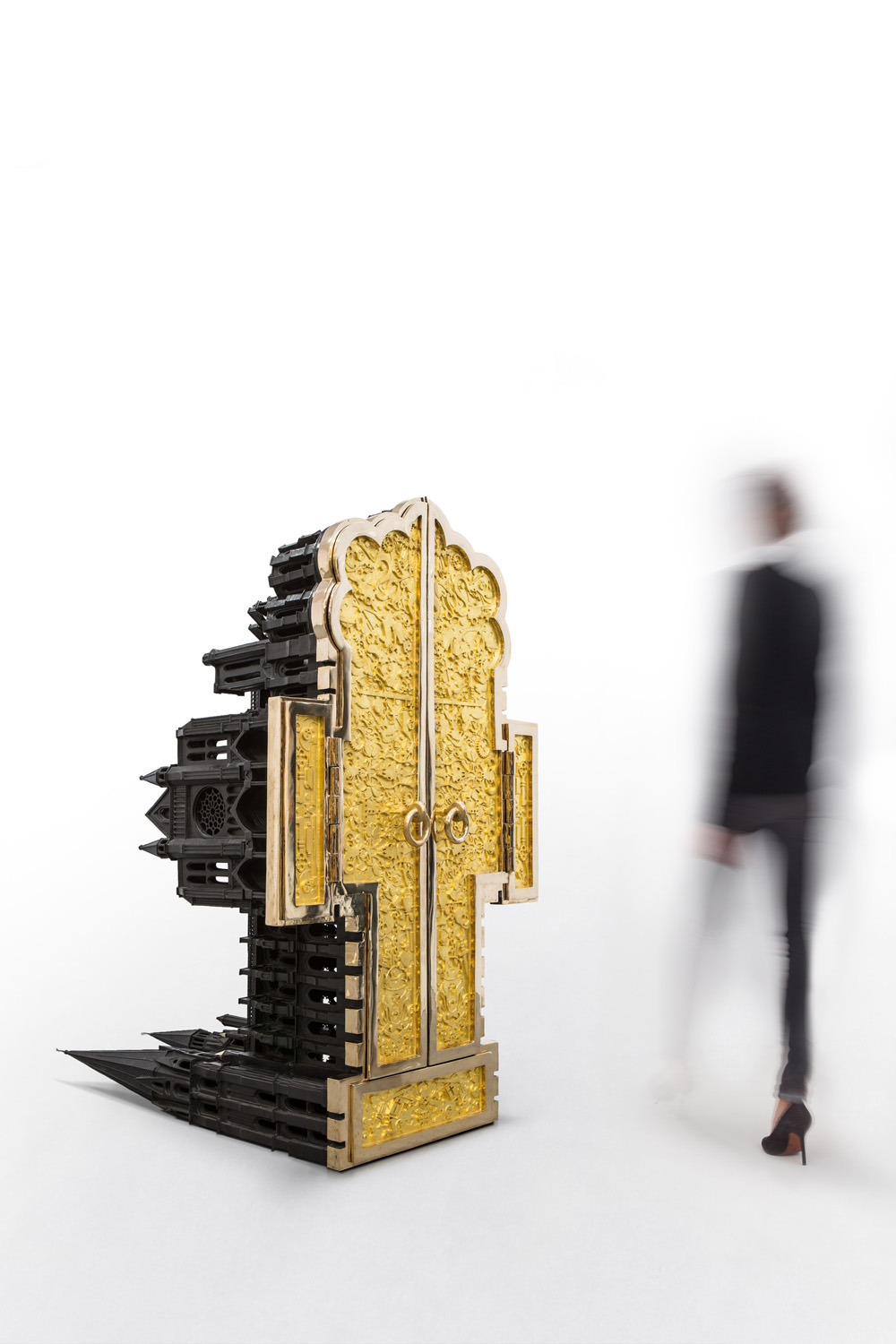 Studio Job puise aussi son inspiration en France. A Chartres d’abord, avec une reproduction de la cathédrale en bronze qui s’ouvre à la manière d’un précieux retable. Paris ensuite, avec la pièce Eiffel Tower Lamp. Réalisée en bronze, la Tour Eiffel se courbe sous le poids d’une pression invisible et se retrouve lampe de bureau.
