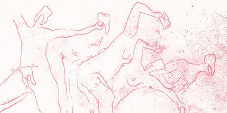 Réalisés au pastel sur des formats de papier de 44 x 54 cm, ces dessins enchevêtrent fragments de corps et bouches géantes dans des orgies ambigües, entre peinture rupestre et chorégraphie contemporaine.