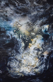 Ses œuvres récentes explorent la représentation de l’introspection par l’utilisation de la matière et du mouvement. A travers ses tourbillons de nuances sombres et lumineuses sur fond sombre, l’artiste nous propose une plongée à l’intérieur de son propre cœur et donne à voir sa remontée du plus profond des abîmes vers le monde. Du fond obscur de ses peintures se détache une matière crépitante, vibrante, dense et ondulante, qui remue parmi les ressentiments du deuil, de l’absence et du passé. Cette nuée de clarté symbolise les éclaboussures du temps, ces instants de vie qui nous arrachent au marasme pour nous rappeler au qui-vive. C’est elle l’« embrasure », cette mince ouverture vers le monde, vers l’autre.