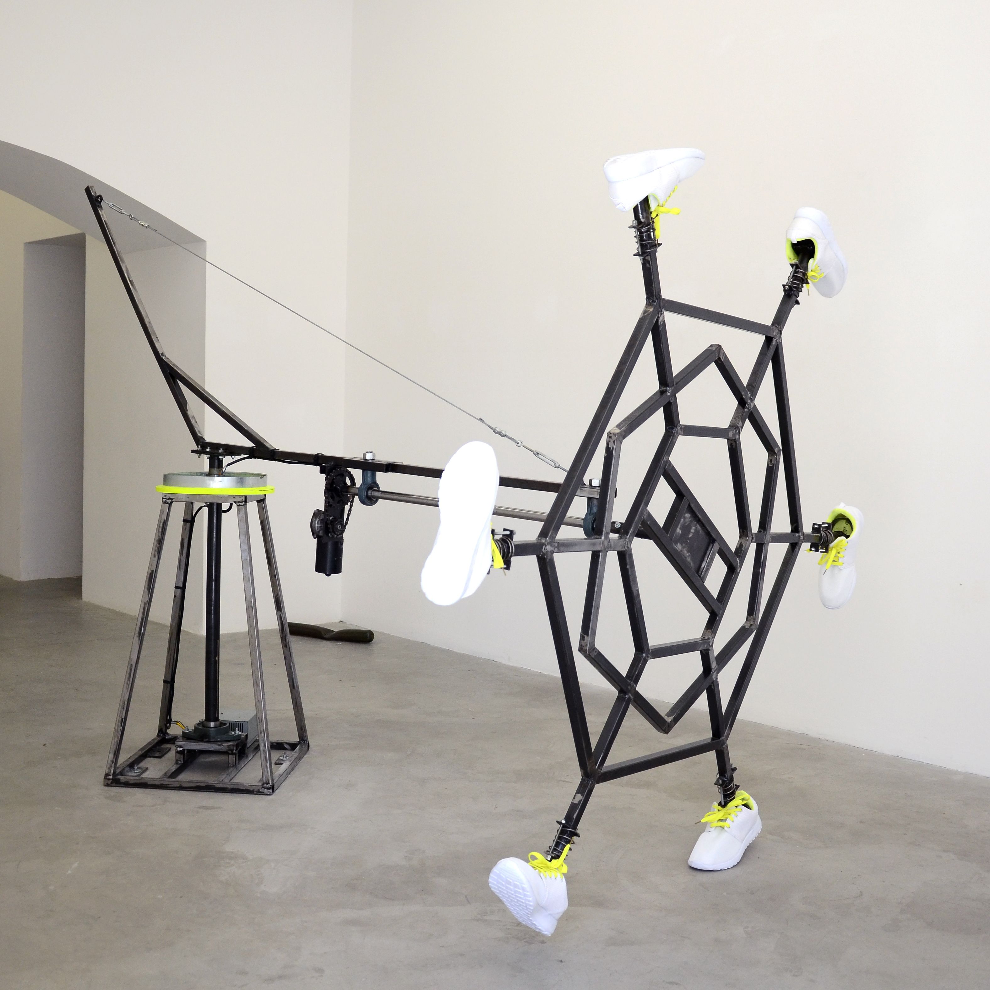 A metaphorical criticism of the incessant activity of capitalist society, the imitation of this machine created by Adidas also highlights his interest in all forms of counterfeiting.