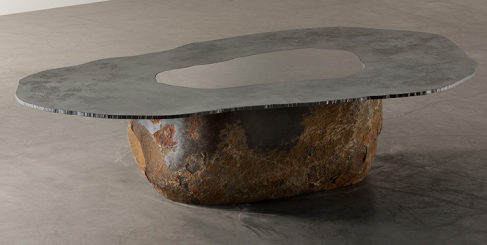 Carpenters Workshop Gallery will present two coinciding inaugural solo exhibitions. One will premiere Sir David Adjaye’s latest body of collect- ible design, consisting of eight limited-edition works, including a chair, dining table and a coffee table. Cast in bronze, they feature contrasting textures. The outer surfaces feature a smooth gold finish, and the in- ner surfaces are textured with human markings, a reflection of Adjaye’s investigations into craftsmanship and the materiality of bronze.