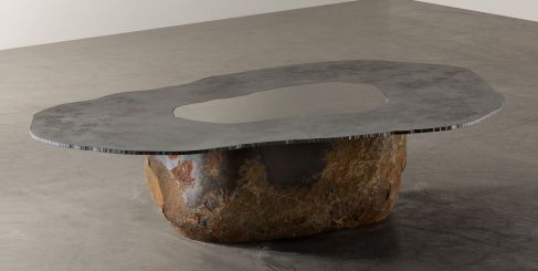 Carpenters Workshop Gallery will present two coinciding inaugural solo exhibitions. One will premiere Sir David Adjaye’s latest body of collect- ible design, consisting of eight limited-edition works, including a chair, dining table and a coffee table. Cast in bronze, they feature contrasting textures. The outer surfaces feature a smooth gold finish, and the in- ner surfaces are textured with human markings, a reflection of Adjaye’s investigations into craftsmanship and the materiality of bronze.