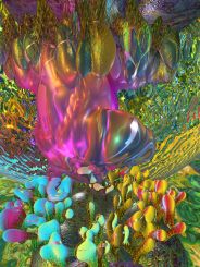 The artist’s skill, resulting from both scientific and artistic research, here brings futuristic imaginings to life, in his own vision of tomorrow’s world, created from fantasies and uncertainties. This is a world governed by technological forces, which will allow, starting from what already exists, the creation, transformation and mutation of new materials and new beings, according to an alternative process of reproduction. The strength of Yoichiro Kawaguchi consists of making of his synthesised images, obtained using technological and scientific processes, a dreamlike, poetic world.