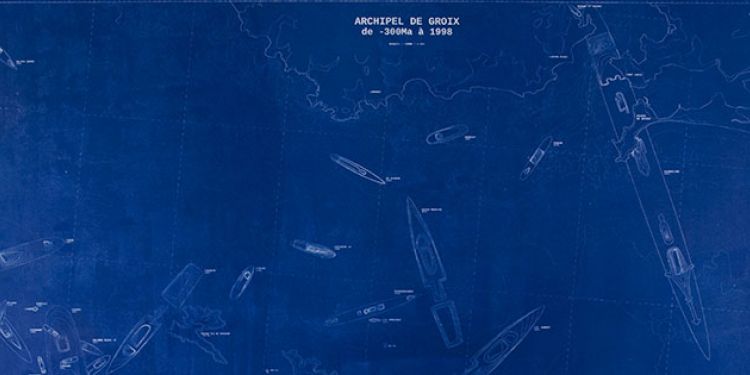 On top : Capucine Vever and Valentin Ferré, Archipel de Groix (de -300Ma à 1998) (Groix Archipelago (from 300 BC to 1998), 2013