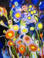 Whether it’s floral whirlwinds or panoramas of flowers that are depicted, the subject matter constitutes the perfect excuse to let a certain sense of movement run wild. Jennyfer Grassi’s artworks are veritable explosions. Sometimes the artist cannot have enough of colour, and applies what remains, leaving the canvas bare here and there: such is our unquenchable appetite for wide open spaces, in art as in nature.