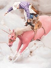 The figure of the cowboy evokes a strong sense of American masculinity, associated with freedom, manifest destiny and a culture of violence. In contrast, the unicorn -- particularly when pink -- reminds us of a more contemporary mythology that has in recent years taken possession of the little girls' section of toy and clothing departments everywhere. Questioning the notion of gender, the exhibition explores the relationship between the sexes along with the hyper-sexualisation of childhood, the notion of queer, and the LGBT movement, whose global mascot has recently become the rainbow unicorn.