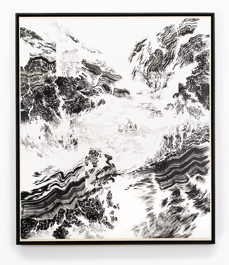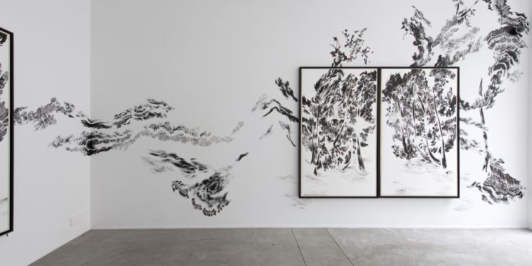 The artist is known for his use of black ink drawings, site-specific and often ephemeral, which interact and transform exhibition spaces into vast, strange landscapes, both physical and mental, shot through with subtle yet chaotic energies.