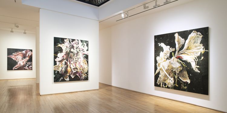 For his return to Galerie Templon, the painter Philippe Cognée, famous for his wax paintings with their blurred effect, is branching off in a radically different direction. After supermarkets, motorways, tower blocks and slaughterhouses, his focus is now on flowers, which he masterfully metamorphoses into monumental vanities.