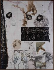 For the past five years, Kallat’s long-standing engagement with the ideas of time, transience, sustenance and the cosmological took the form of large elemental drawings, and investigative animation videos, photo-works and sculptures. Kallat’s newest works, titled Palindrome/ Anagram Paintings, draw upon insights from his varying artistic explorations, as well as his work from the mid-nineties, to produce a radical linguistic renewal accommodating a wide array of his recurring preoccupations. A hand-drawn graph undergirds the paintings as well as the Untitled (Emergence) Drawings a suite of small works on gesso panels. Like a ‘palindrome’, the large paintings can be read in multiple orientations, and are essentially ‘anagrammatic’ in that they reorder various components to create a sweeping web-work of associations. Abstract gestures seem to crystallize, acquire perceptible form and resonate with meaning as if celestial orbits, geographical coordinate systems, botanical and topographical evocations begin to reveal the signatures of generative growth, evolution and entropy.