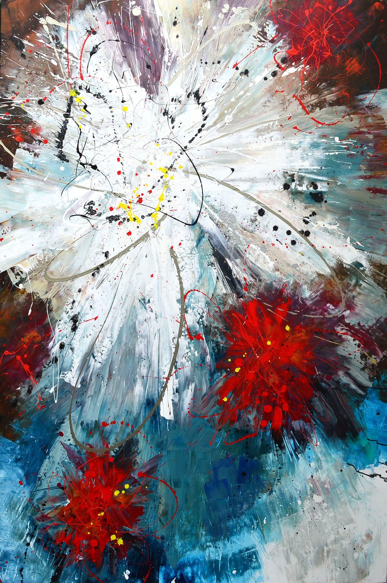 This collection of paintings by Monica Bassett is part of a movement called Lyrical Abstraction. The large, colorful paintings are full of energy, spontaneity, and spirituality. Through her method of Painting with the Spirit, the artist considers each stroke and each splash of color to be a form of “letting go” of emotion on canvas.