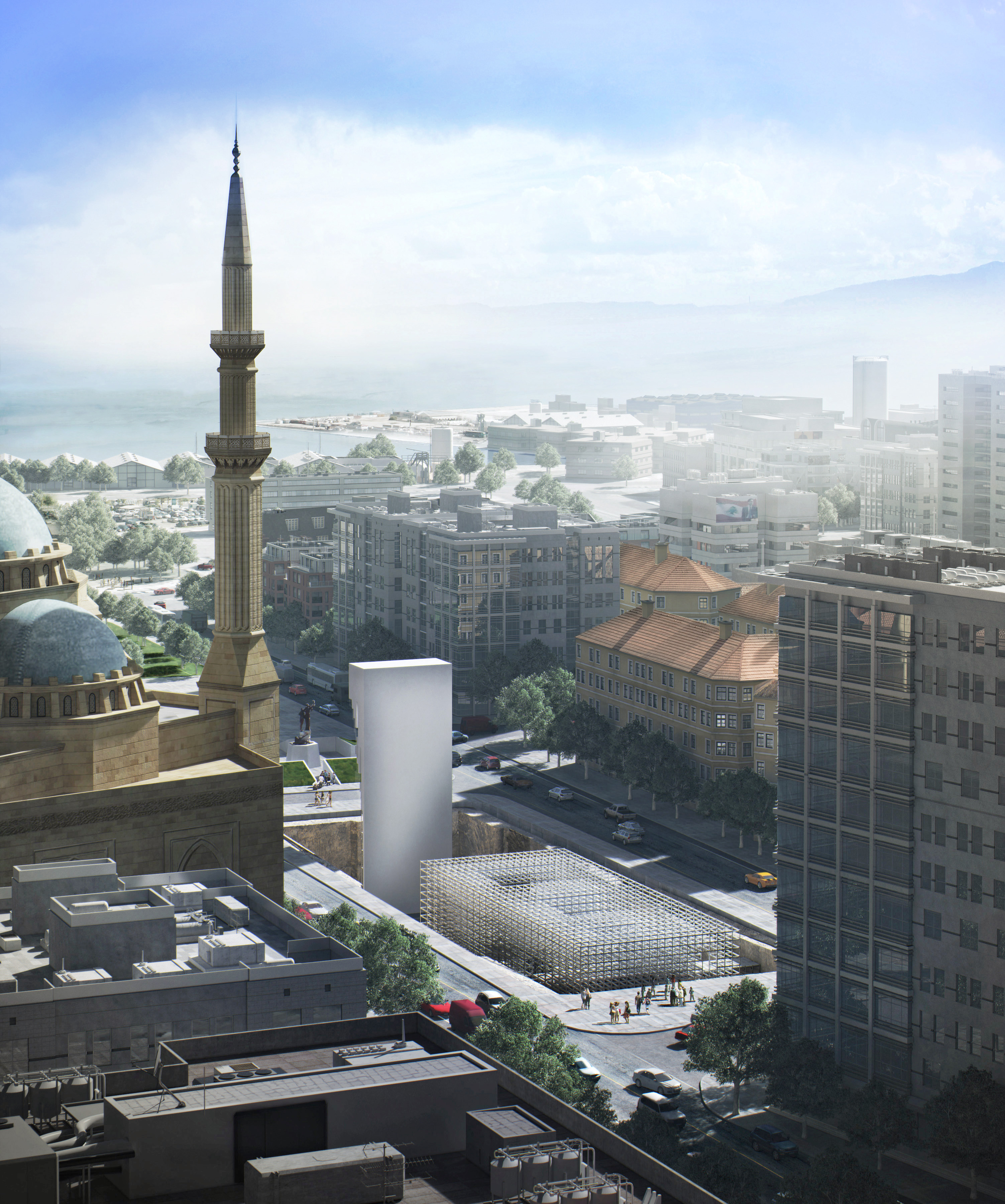 “Our ‘Museum of Civilizations’ project is sited on Martyrs’ Square in the heart of Beirut, and built upon a site sunk deep into the successive strata of the civilizations that underlie Beirut, a city which has been, in turn, Greek, Roman, Byzantine, Ottoman, and French”. Galal Mahmoud