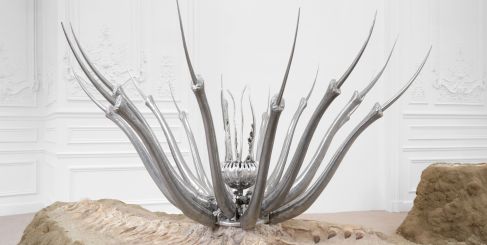 L’exposition La cinquième essence offre à l’artiste l’occasion de déployer toute la richesse de sa pratique sculpturale – aluminium, bronze, verre, argile – en résonance avec l’architecture du MO.CO. Panacée, pensée autour d’un patio. Ce cadre devient le réceptacle des quatre éléments à la base de ses œuvres : l’eau, la terre, l’air et le feu.