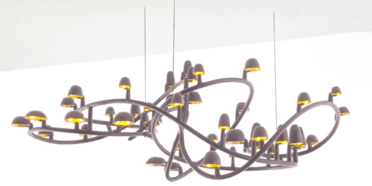 L’australien Charles Trevelyan travaille lui aussi le bronze avec son élégant luminaire Tripartite (Grey).