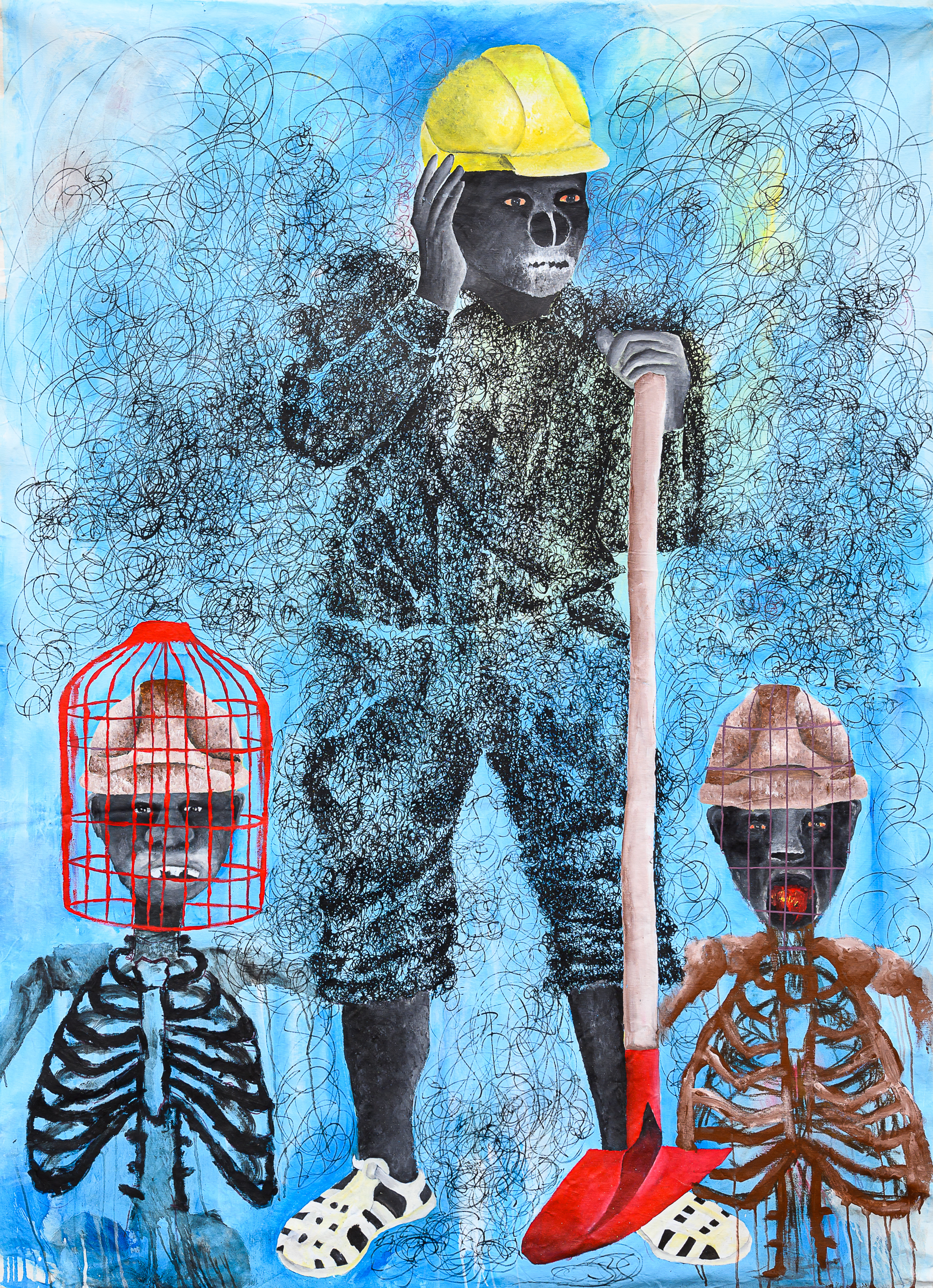 Serigne Ibrahima Dieye, Workers, 2022, 200 x 140 cm, Technique mixte sur toile