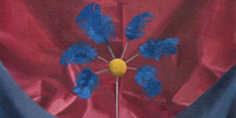 Réalisées avec des baguettes de bois, des morceaux d’étoffes colorées ou des papiers froissés, les maquettes de Giorgio Silvestrini imitent des fleurs fluettes, des branches, des plantes grasses, des nuages ou de frêles marionnettes. Disposées sur des tables et des drapés, que l’artiste représente en plongée, elles dialoguent avec des sculptures de petit format (Derain, Giacometti, Arturo Martini…), que l’artiste aura photographiées puis peintes sur la toile. L’ensemble offre des associations d’objets mystérieuses, où de subtiles correspondances formelles se laissent deviner… Par exemple, des motifs de tissus rayés se répondent d’une peinture à l’autre. Et, dans Sarabanda, la conjugaison de matières dures et douces crée au contraire un oxymore, à travers une plante aux feuilles revêches empotée dans un vase couvert de velours. Les couleurs pastel, qui rappellent la tempera des fresques de la Renaissance italienne, associées à un éclairage diffus, harmonisent enfin les compositions de Giorgio Silvestrini, et nous plongent dans une atmosphère feutrée.
