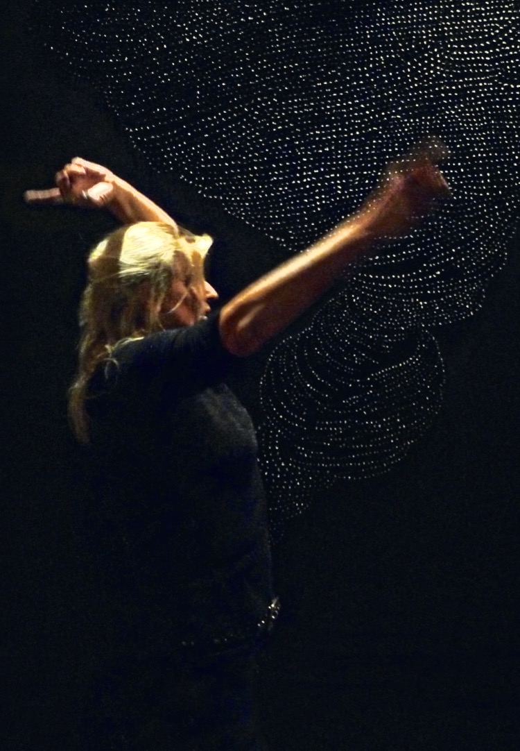 Dans ses œuvres précédentes tout ce que la nature peut offrir au regard est présent grâce aux gouttes qui, selon l’éclairage, jouent avec les ombres et la lumière : on peut y deviner des champs coiffés par le vent comme dans les films japonais, des chevelures torsadées, des gerbes de blé, des fleurs qui s’épanouissent au soleil, mais aussi des nuages circulaires qui se chevauchent, des tornades, des typhons ou des cycles de marée, des colombes aux ailes translucides.