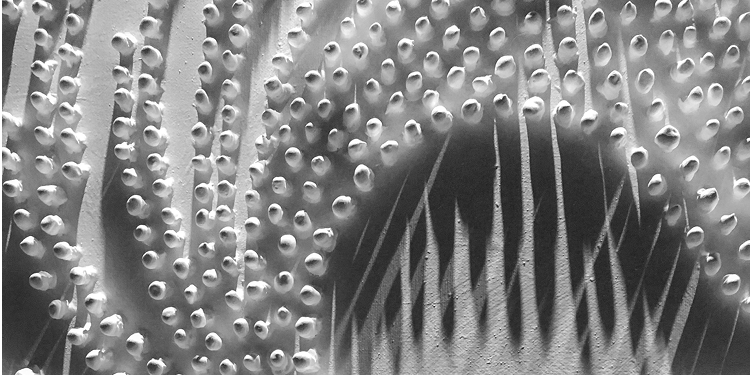 Parfois les gouttes semblent vouloir sortir du cadre, comme la sève de l’écorce, et dessiner des guirlandes tressées de fleurs inconnues impatientes de s’envoler d’un coup de vent ou d’un jaillissement de lumière. Autonomes et solidaires, ces petites fées de peinture acryliques s’échappent du cadre pour poursuivre un voyage secret. Indisciplinées, elles tournoient dans l’ordre d’un cadre dont elles semblent pouvoir s’échapper.
