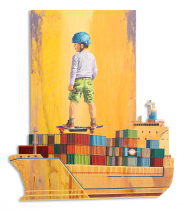 Seuls ou en groupe, les personnages de Mariam Abouzid Souali illustrent les rapports de forces à l’oeuvre entre le Nord et le Sud, toujours dans un cadre poétique ou métaphorique. En plaçant souvent des enfants au coeur de ses compositions, elle dresse un pont entre l’univers du jeu et un ordre global commercial et industriel.