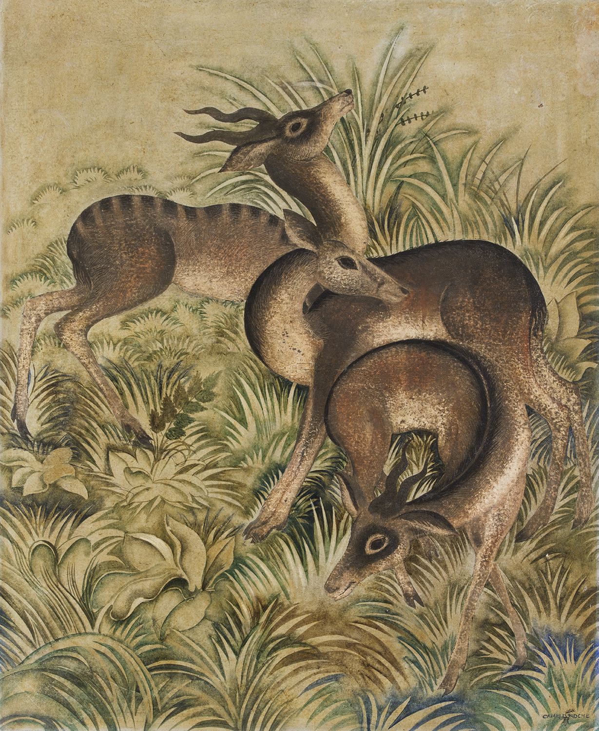 Tantôt domestiques, tantôt sauvages, animaux des jardins ou ceux des forêts, les œuvres de l’Artiste se peuplent de biches, de cygnes, d’oiseaux exotiques ou encore de panthères. C’est au Jardin des Plantes de Paris qu’il puise son inspiration.