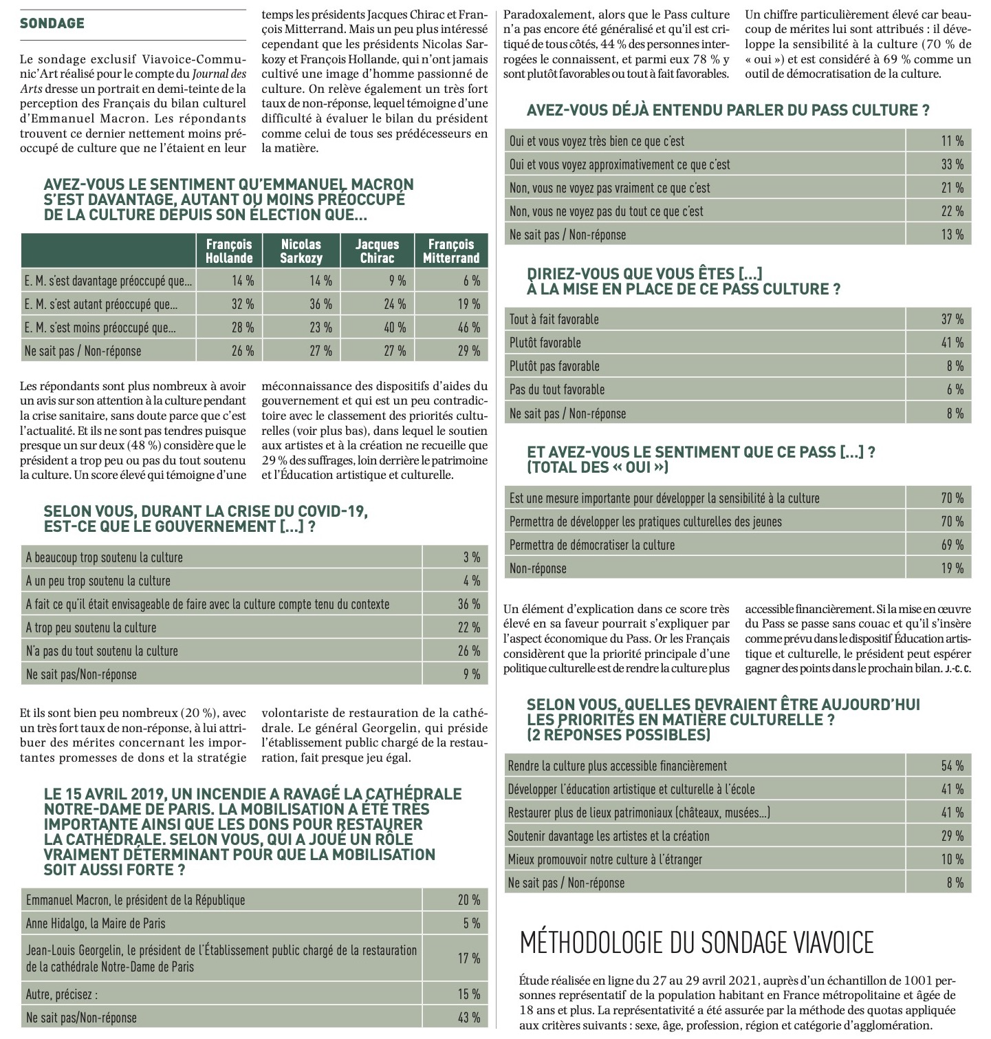 "Le bilan culturel d'Emmanuel Macron", un sondage inédit Viavoice-Communic'Art