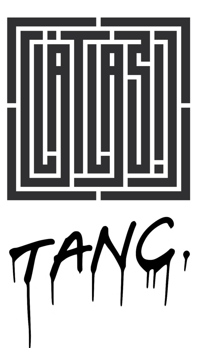 Travaillant ensemble ou côte-à-côte depuis plus de 15 ans, L’ATLAS et TANC se basent sur la proximité des logotypes géométriques de leurs oeuvres qui sont des distortions de leurs noms respectifs.