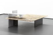 Dans le paysage de la galerie leur présence horizontale et verticale rythme l’espace d’une beauté minimale, paradoxalement richement ornée des motifs graphiques des marbres et de l’onyx.