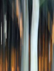 Ainsi Anne Pharel nous invite au cœur de la nature lors de ses déambulations nocturnes : racines, feuillages, ruisseau, tronc viennent ponctuer ces minutes suspendues. Ici l’érosion du temps qui a laissé sa trace sur les murs effrités, là, la lumière de l’aube qui fait écho à celle du crépuscule. Et toujours ce flou qui caractérise la photographe, comme pour évoquer la fugacité de l’instant.