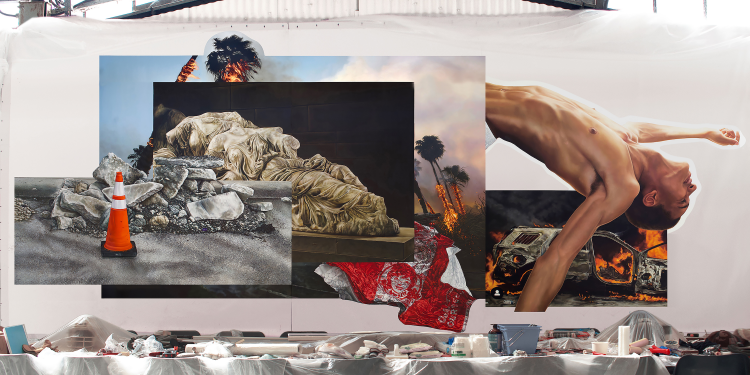 En prenant le Zeitgeist d’aujourd’hui et en le fracassant sous forme de peintures murales, de sculptures et d’installations défragmentées, j’essaie de capturer le désespoir et la répulsion de ma jeune génération et donner un coup de batte de baseball à tout le reste. »