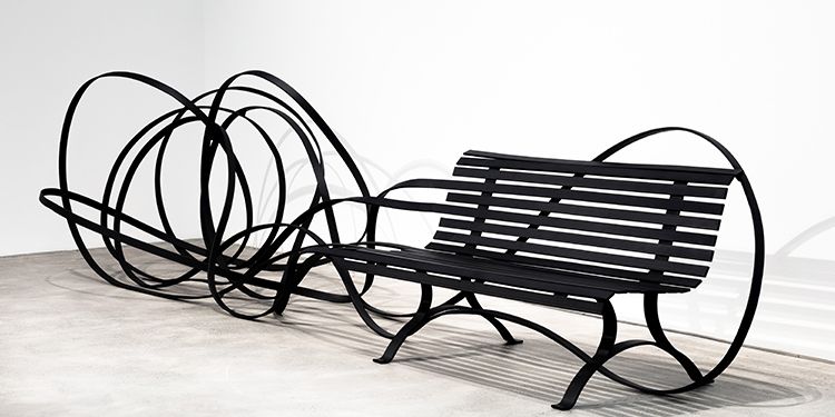 On retrouve aussi Black Sand, 2018 du célèbre sculpteur argentin Pablo Reinoso. Cette œuvre est le premier banc en acier peint en noir de la série Spaghetti Bench.