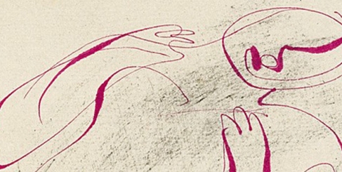 A propos du tableau « La lévitation » Maurice Benhamou écrit : « Les lignes estampées n’ont subi aucune soustraction de pigment. Noires sur noir, elles sont à peine visibles. Elles se devinent plutôt qu’elles ne se voient. L’œil dans son élan de lecture depuis l’extrême gauche, les scrute, se demande un instant s’il ne les produit pas lui même. »
